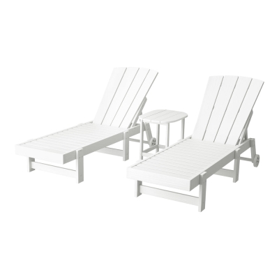 3pc HDPE Sun Lounger with Tapered Back & Table Set - White